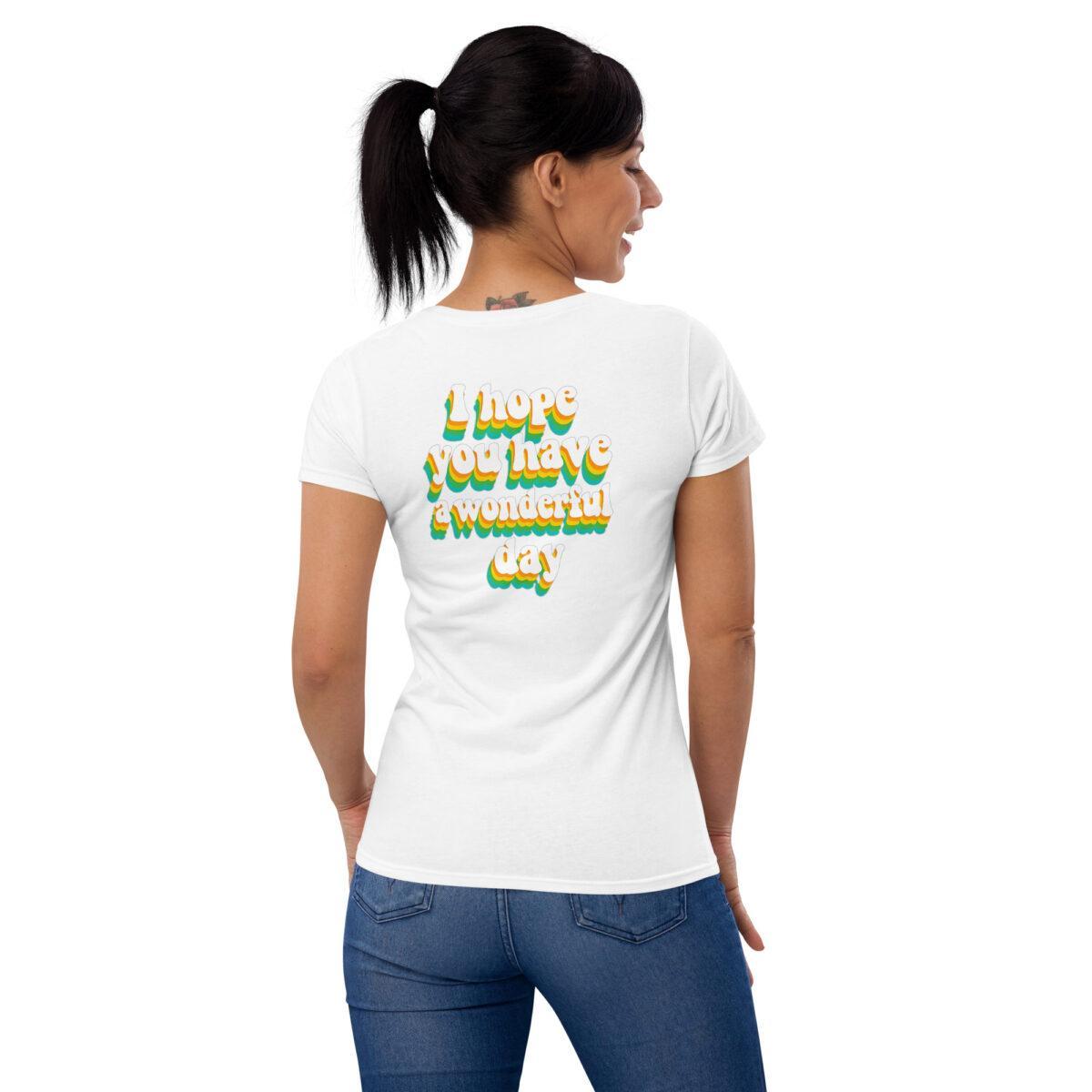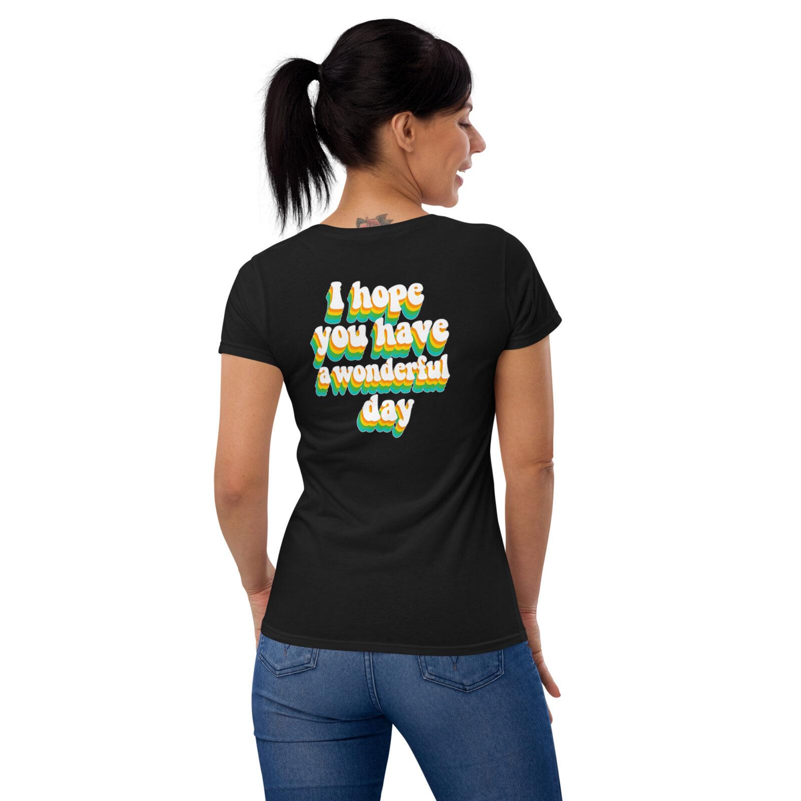 Brighten up the world with a stylish twist! Our “I Hope You Have a Wonderful Day” women’s fashion fit t-shirt delivers a simple yet heartwarming message printed boldly on the back—perfect for spreading positivity with a touch of surprise. This fitted tee offers a flattering, modern cut while keeping things casual and comfy. Ideal for those who love spreading good vibes in style, this shirt is sure to make an impression as you turn heads—and leave smiles in your wake!